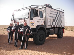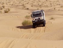Die ersten Etappen haben wir uns gut geschlagen. In unserer LKW Klasse waren 4 Fahrzeuge. Unteranderem war das tschechische Tatra Dakar Team mit am Start. Für uns keine Chance. Diese Mannschaft fährt mit anderem Material und mit anderen Voraussetzungen. So haben wir uns mit einem anderen MAN Team immer die Plätze 2 und 3 geteilt. Wir sind gut gefahren, jedoch bremsten uns immer wieder technische Probleme aus. So fehlte uns in einer Speziale ein kompletter Luftkreis (und der für die Bremsen), die Navigationstechnik ist einmal ausgefallen (40 km vorm Ziel) und das größte Problem war jedoch unser Fahrzeugkoffer. Der hatte sich für eine Trennung vom Hilfsrahmen entschieden. Trotz nachschweißen wurden die Risse immer mehr und länger.In zwei Etappen konnten wir die vorgegebenen Zeitfenster nicht einhalten. Einmal entschieden 23 Sekunden für das Aus. Da wir auf Grund der hohen Zeitstrafen keine Chance zum zweiten Platz mehr gesehen haben, beschlossen wir, durch Auslassen von einigen harten Pistenetappen das Fahrzeug zu schonen. Das Dünenfahren haben wir uns aber nicht nehmen lassen. Und da waren wir super unterwegs. Es zwingt selbst mich immer wieder zum Staunen, was der MAN so bewältigen kann. Es war uns auch immer eine Ehre unseren Mitstreiter (MAN) aus festgefahrenen Situationen zu bergen. So haben wir der Crew das Schaufeln erspart. Paul, der Fahrer, hat immer hilfesuchend nach uns Ausschau gehalten und noch mit dem Seil gewinkt, obwohl wir nur noch 30 Meter von Ihm entfernt waren.