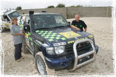 Erschöpft und froh diese Herausforderung bestanden zu haben, wollten wir hier noch einmal unseren Quickservice Daniel und Andreas danken. Es ist schon beachtlich, fast die gesamte Rallyestrecke mit dem extrem beladenen Nissan Patrol in einem sportlichen Tempo zu fahren. Denn die Zeit, das Essen, und die Getränke waren immer knapp. So sind Daniel und Andreas immer die letzten gewesen, die das Camp verlassen haben, wurden aber immer als erste erwartet. Ein wirklich hartes Brot. Nach dem Moto" wo bleibt ihr denn, wir sind schon lange da".